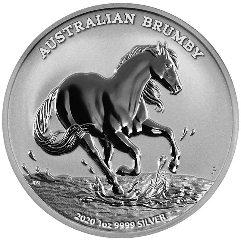 На реверсе изображен скачущий брамби. Слева внизу инициалы дизайнера JM (Jennifer McKenna), справа внизу монограмма Пертского монетного двора Р. Вверху надпись: AUSTRALIAN BRUMBY (серия), внизу: 2020 1oz 9999 SILVER (год чеканки, вес и проба серебра).