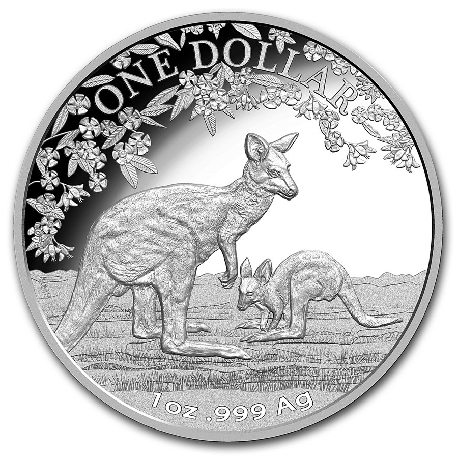 Серебряная монета с изображением символа Австралии — Кенгуру.