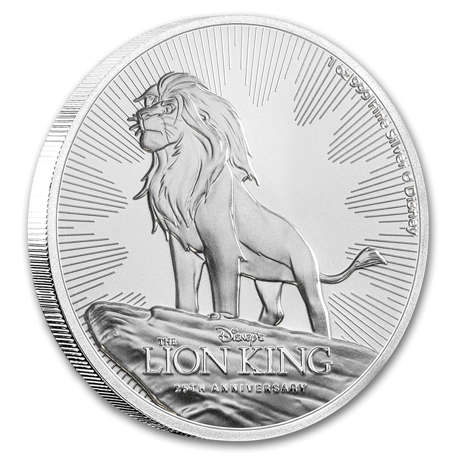 Монета, выпущенная к 25-ой годовщине выпуска мультфильма «Король-Лев» компании Дисней. Ограниченный тираж.