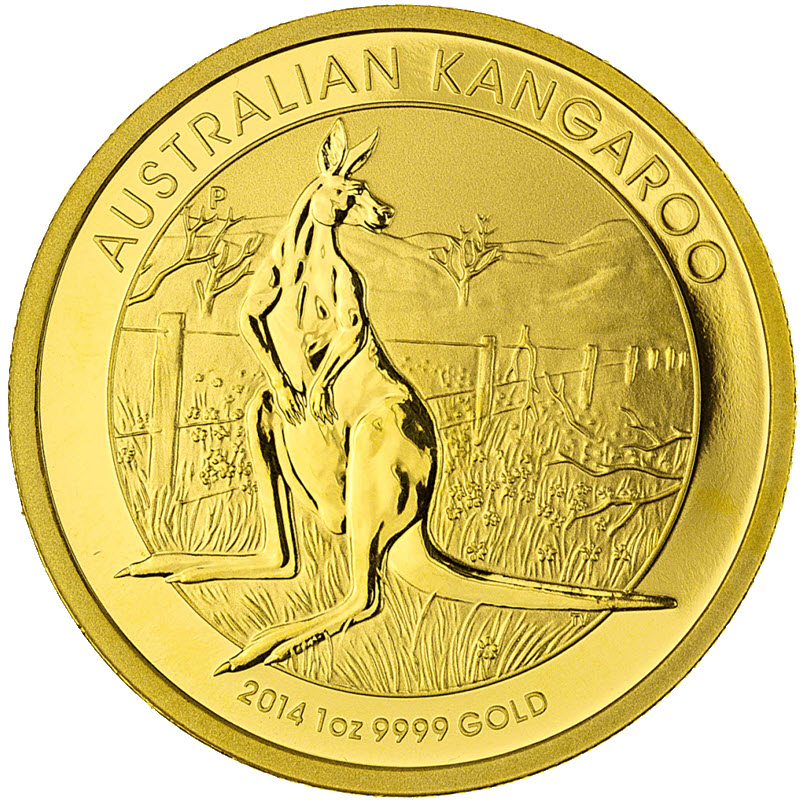 Золотая инвестиционная монета Австралии - Кенгуру 2014 г.в., 31.1 г чистого золота (проба 9999)