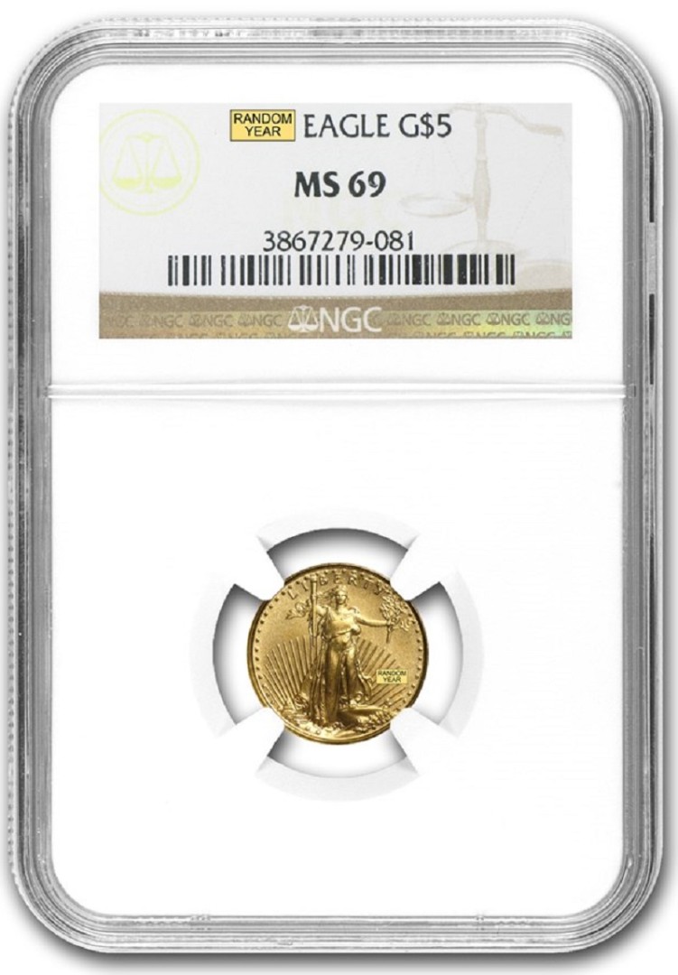 Золотая инвестиционная монета монетного двора США, упакованная в слабе.