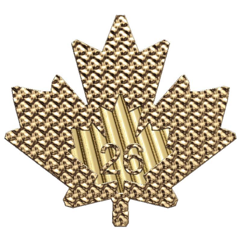 На реверсе изображение кленового листа работы Уолтера Отта (Walter Ott). Слева и справа надпись: 9999 (проба золота). Вдоль канта надпись: CANADA FINE GOLD 1 OZ OR PUR (страна-эмитент, вес золота). Внизу, справа от стебля лазерная гравировка: 26 (год чеканки).
