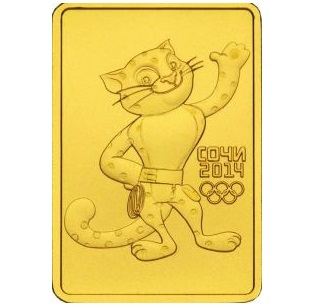 Золотая монета России "Олимпиада в Сочи - Леопард" 2014 г.в., вес чистого золота 7,78 г (проба 999)