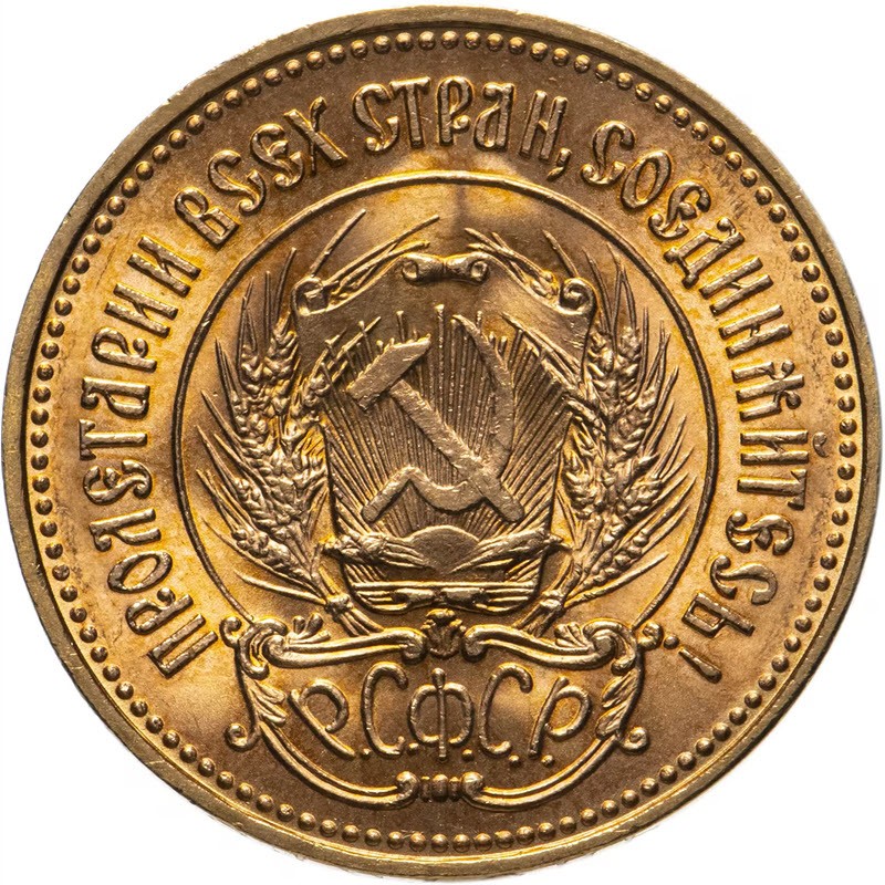 В 1922 году советское правительство приняло решение о создании устойчивой валюты, чтобы окончательно победить инфляцию. Такой валютой стал Золотой Червонец «Сеятель». На аверсе монеты изобразили герб РСФСР. Чеканить новую золотую монету начали в 1923 году на Петроградском монетном дворе. Производство Золотого Червонца шло параллельно с выпуском бумажных червонцев. По своим весовым и другим характеристикам (диаметр, толщина, проба золота) Золотой Червонец «Сеятель» полностью воспроизводил золотой червонец Николая II. В 1924 году герб РСФСР на Золотых Червонцах было решено заменить гербом СССР. Таких «Сеятелей» было отчеканено очень малое количество.