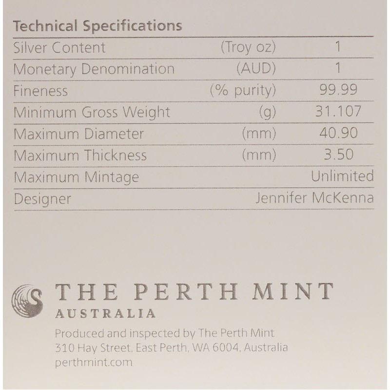 На реверсе изображены жених и невеста, обнимающиеся в день свадьбы на фоне двух переплетенных обручальных колец. Справа у канта монограмма Пертского монетного двора Р, внизу инициалы дизайнера JM (Jennifer McKenna), в середине надпись: Congratulations 2025 1oz 9999 SILVER (Поздравления, год чеканки, вес и проба серебра).