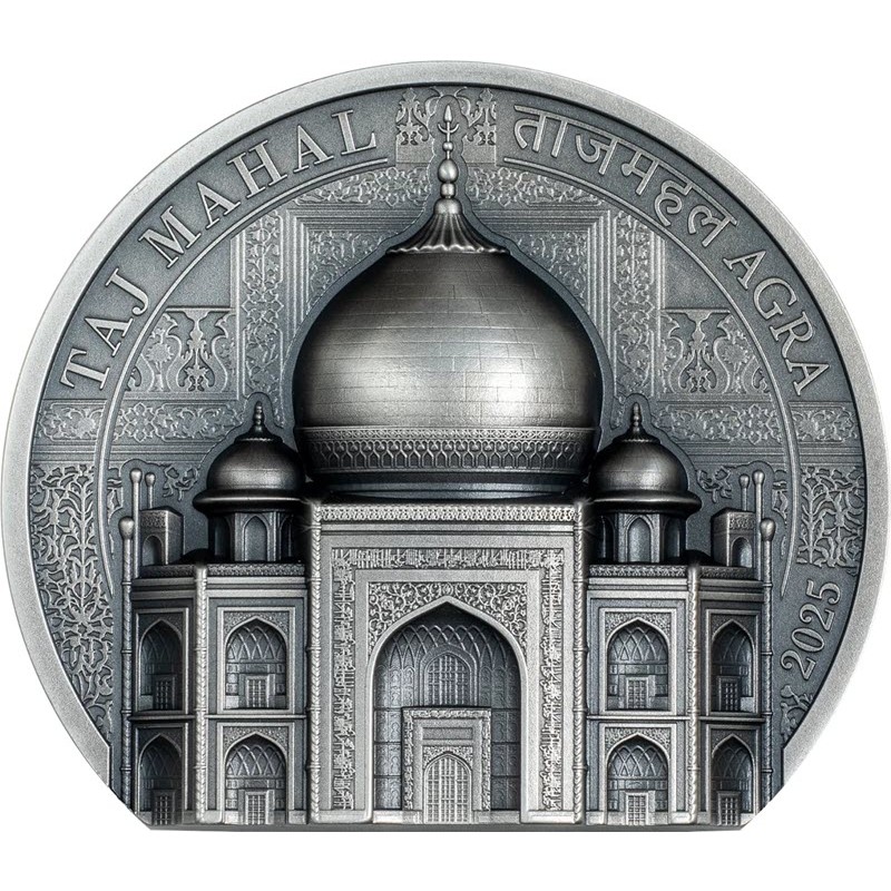 На реверсе изображен Тадж Махал. Вверху вдоль канта надпись: TAJ MAHAL ताजमहल AGRA 2025 (мавзолей, год чеканки).