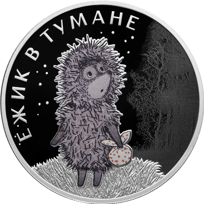 Российская памятная серебряная монета 2024 г. Банка России посвящена мультфильму «Ежик в тумане». Тираж: 7000 штук.
