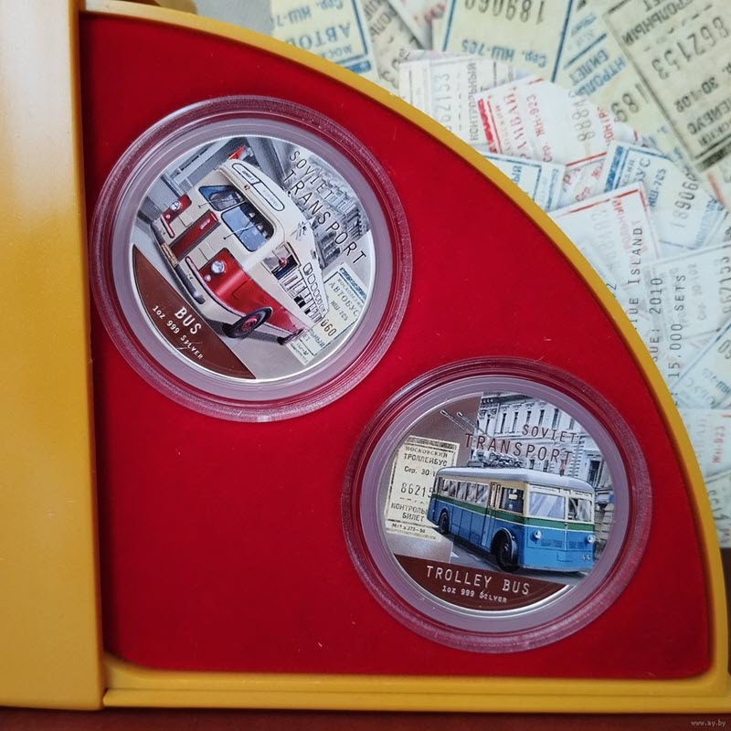 Здравствуйте, Анна! Есть набор из 4-х серебряных монет Ниуэ «Советский общественный транспорт» 2010 г.в., можете его посмотреть на нашем сайте: https://zoloto-md.ru/monetyi-dlya-investiczij/zarubezhnyie/komissiya-nabor-iz-4-x-serebryanyix-monet-niue-sovetskij-obshhestvennyij-transport-2010-g.v.,-124,4-g-chistogo-serebra-proba-0,999-y.d