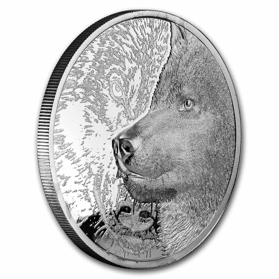 изображает ультравысокое рельефное изображение бокового профиля волка в спокойном состоянии с другим изображением волка, обращенного вперед, на заднем плане.