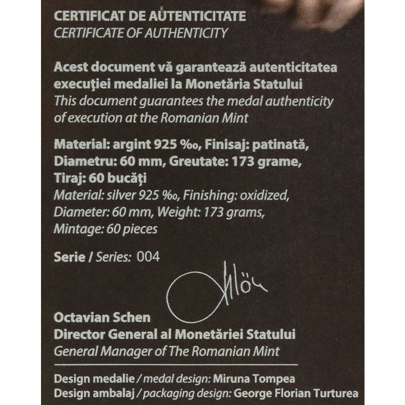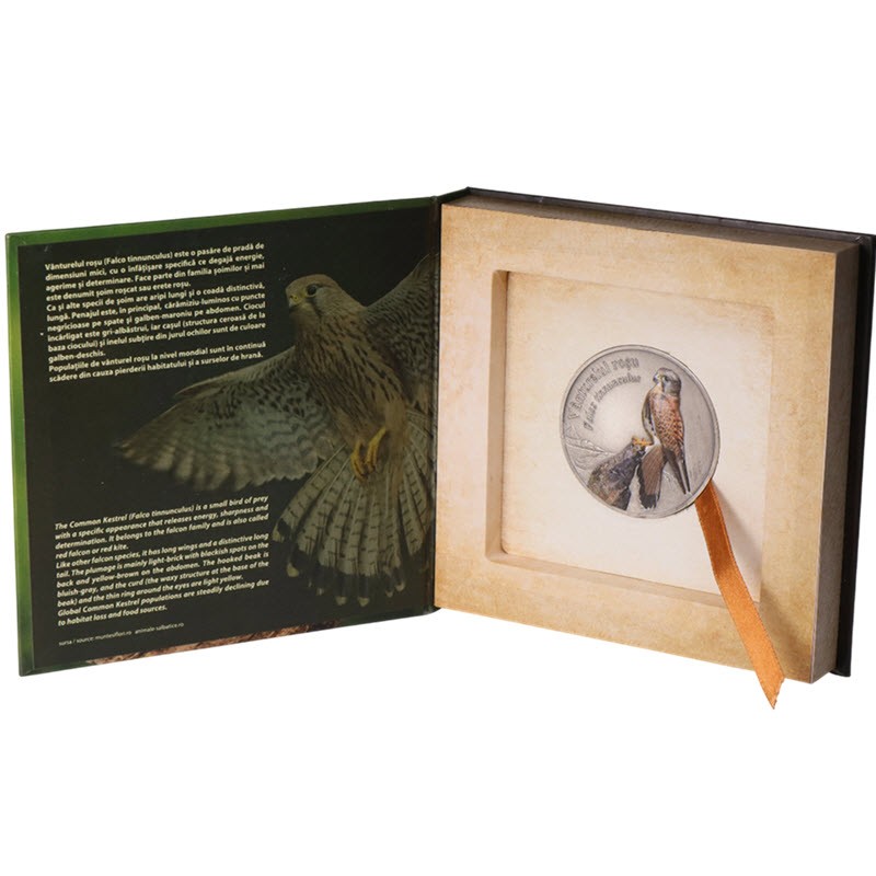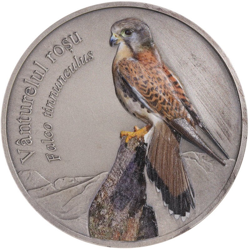 Эта серебряная медаль от Румынского монетного двора посвящена красной пустельге. У нее качество античной отделки, высокий рельеф и индивидуальный номер на гурте. Поставляется в оригинальном футляре с сертификатом подлинности. Тираж 60 штук.