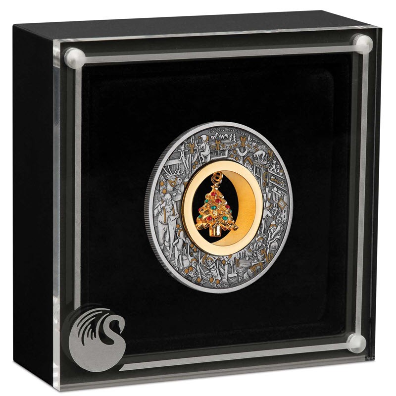 Эта чудесная серебряная монета от Пертского монетного двора Австралии весом в 2 тройские унции посвящена мастерской Санты-Клауса У нее качество античной отделки, селективная окраска, выборочное золочение и вставки кристаллов Swarovski.