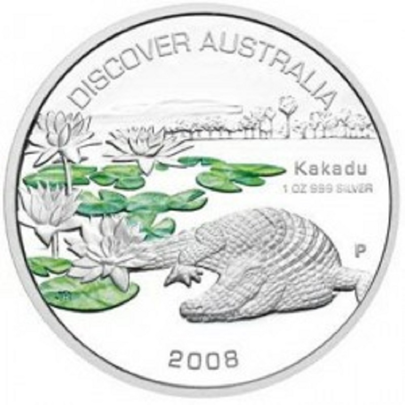 Серебряная монета Австралии «Национальный парк Какаду» 2008 года выпуска из серии «Открой Австралию».