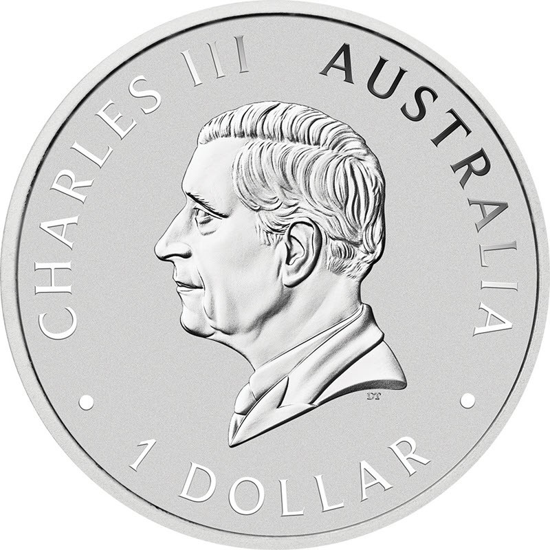 На аверсе изображен Его Величество король Чарльз III. Внизу портрета инициалы дизайнера TD (Dan Thorne). Вокруг портрета надпись: CHARLES III AUSTRALIA · 1 DOLLAR · (Чарльз III, страна-эмитент, номинал).