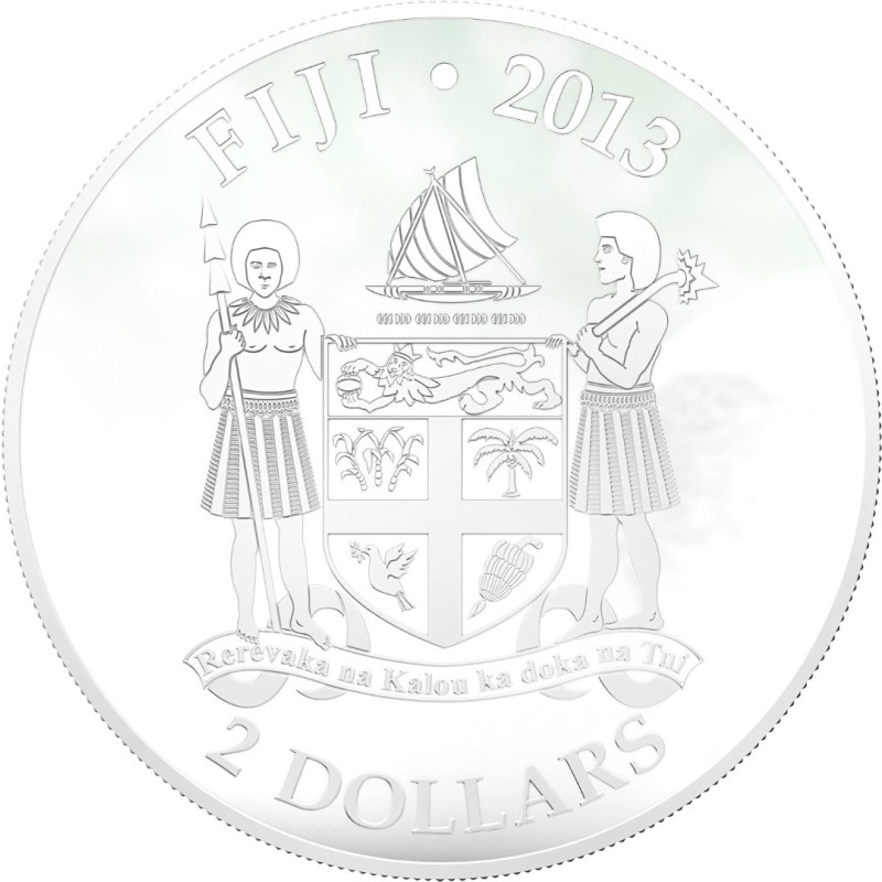 Герб Палау, название страны-эмитента - FIJI; год выпуска - 2013; номинал - 2 DOLLARS.