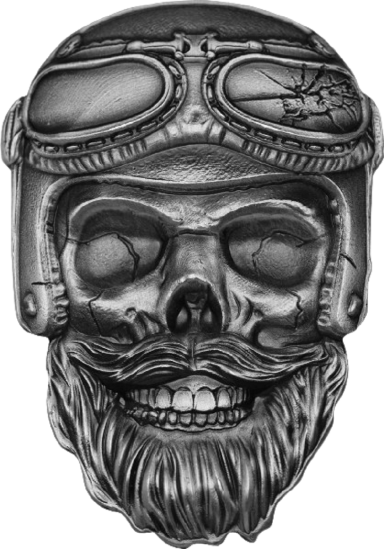 Эта невероятная серебряная монета не только изображает невероятный череп байкера, но и полностью сформирована и детализирована, чтобы получить реалистичный вид. Монета отличается сверхвысоким рельефом, античной отделкой и поставляется в футляре вместе с сертификатом подлинности. Ограниченный тираж всего 999 экземпляров по всему миру!