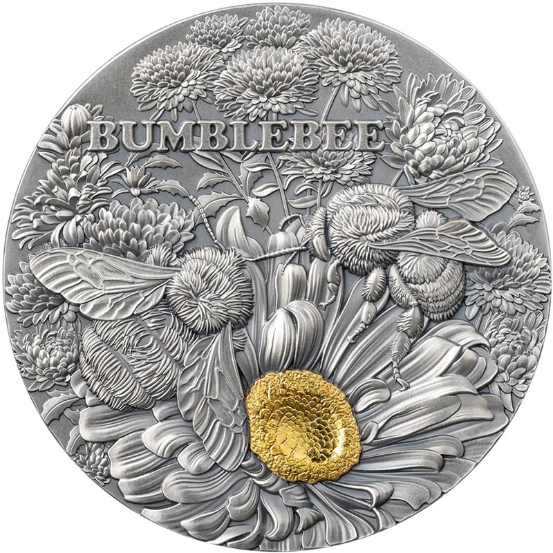 Эта серебряная монета весом 2 унции посвящена шмелям. У монеты очень подробный горельеф, отделка под старину, выборочная позолота, поставляется в тематической коробке вместе с сертификатом подлинности. Тираж: 500 штук!