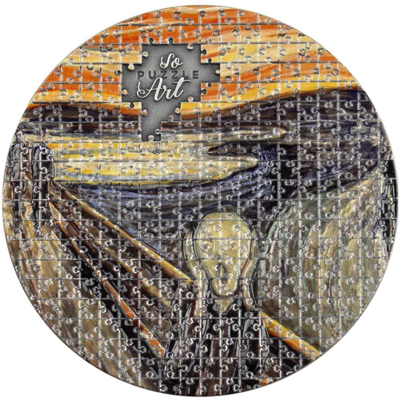 Эта необычная серебряная монета весом в 3 унции является четвертой в серии "soPuzzle"Art и посвящена одной из самых известных картин Эдварда Мунка: "Крик". тематический футляр вместе с сертификатом подлинности. Ограниченный тираж всего 340 штук по всему миру!