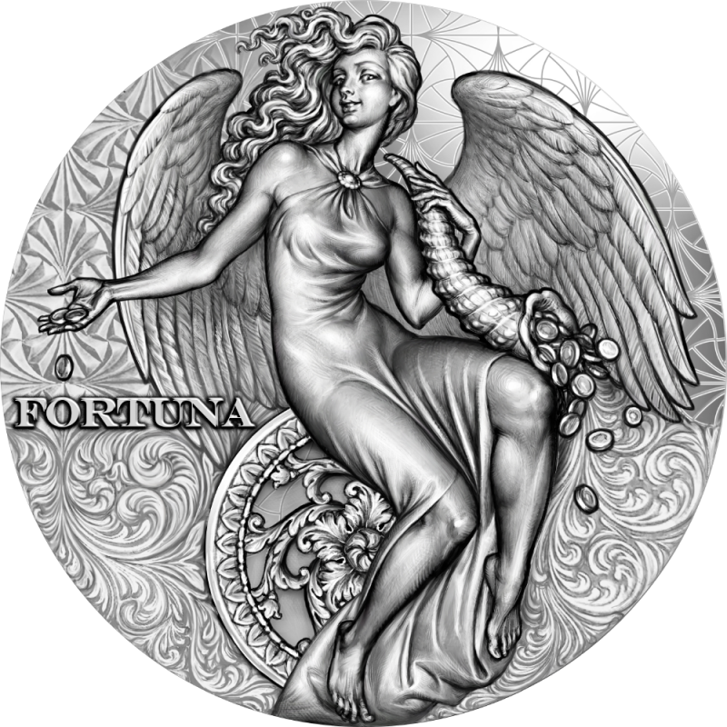 Серебряная монета из серии "Небесная красота", посвящена Фортуне - богине судьбы и удачи. У монеты красивые чеканные детали, античная отделка и она поставляется в деревянном футляре вместе с сертификатом подлинности. Ограниченный тираж всего 500 штук по всему миру.