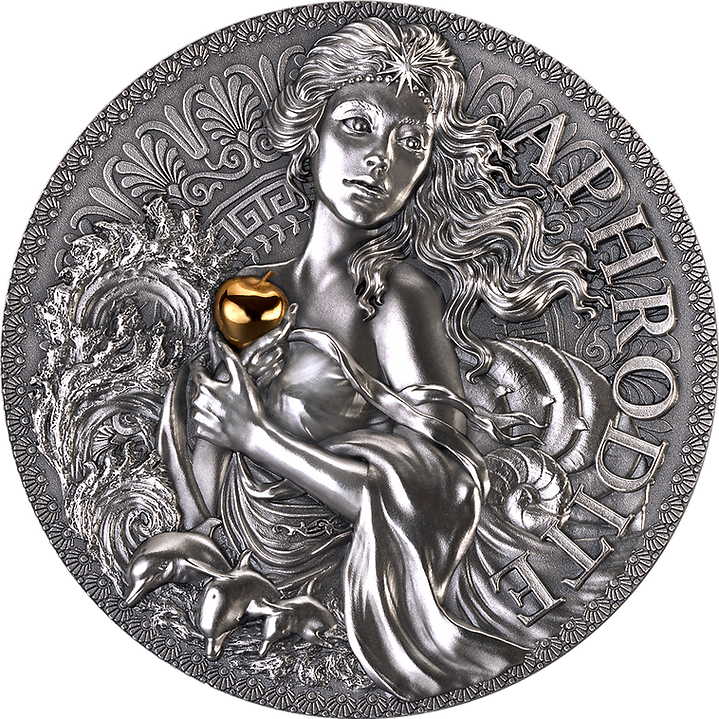 Эта серебряная монета весом 2 унции является первым выпуском серии "Великая греческая мифология", в которой представлены самые известные персонажи греческой мифологии. В этом выпуске: Афродита. Монета имеет прекрасный дизайн с высоким рельефом и выборочным золочением. Она поставляется в великолепном деревянном футляре вместе с сертификатом подлинности. Ограниченный тираж 500 экземпляра.