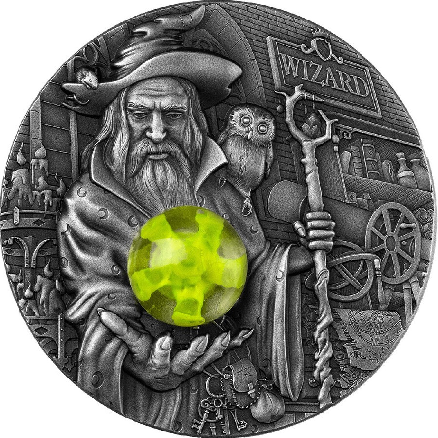 На этой потрясающей серебряной монете весом в 2 унции изображена фигура Волшебника, существа, способного влиять на реальность с помощью сверхъестественных сил! Монета с пронумерованным гуртом, античной отделкой и прекрасной флуоресцентной 3D-вставкой от польского монетного двора. Она поставляется в оригинальном футляре с сертификатом подлинности. Ограниченный тираж до 888 штук по всему миру.