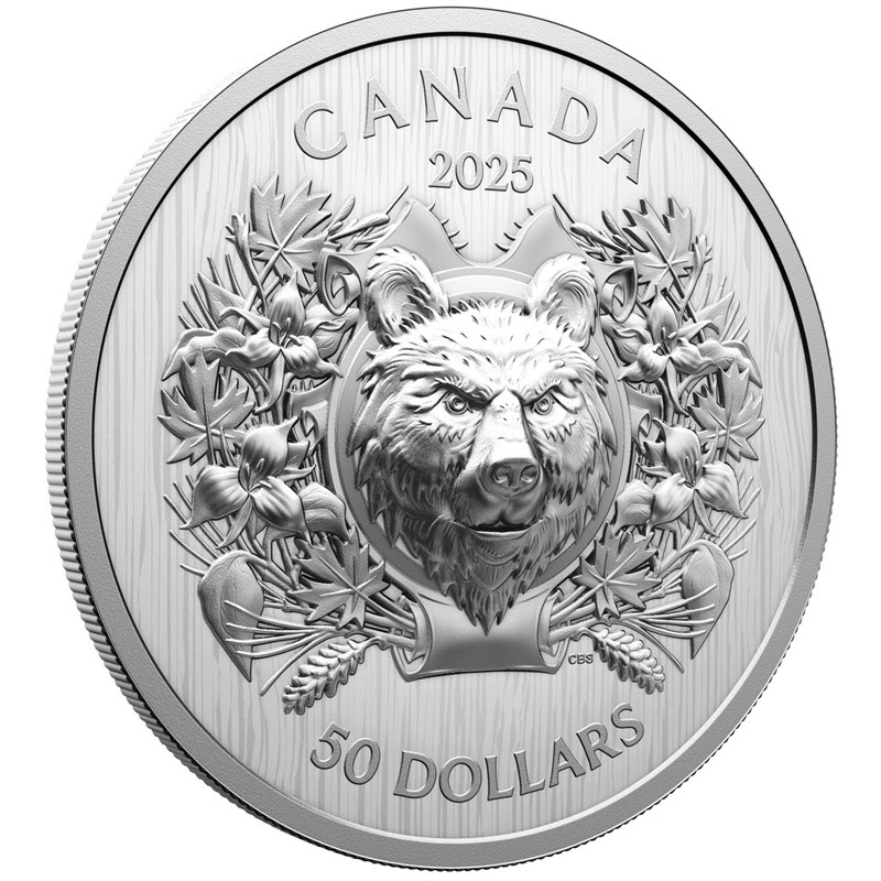 Серебряная монета Канады "Геральдический медведь" 2025 г.в. (пруф), 70 г чистого серебра (проба 9999)
