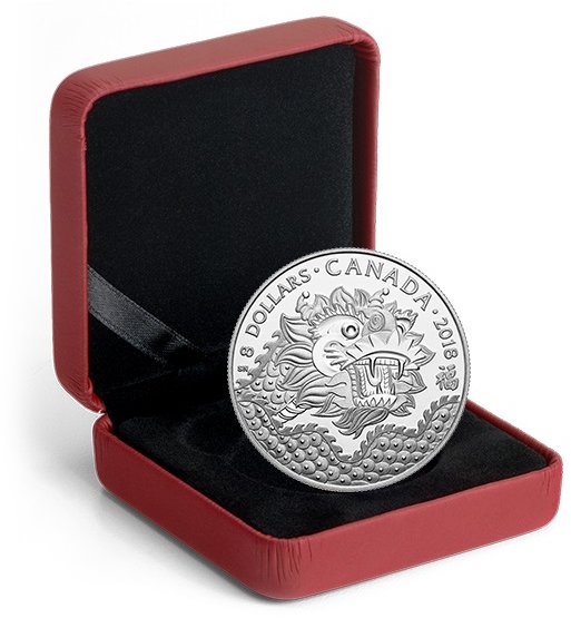 Изображение Дракона, как оно воспроизводится в китайской традиции, номинал монеты, название страны-эмитента, год выпуска.