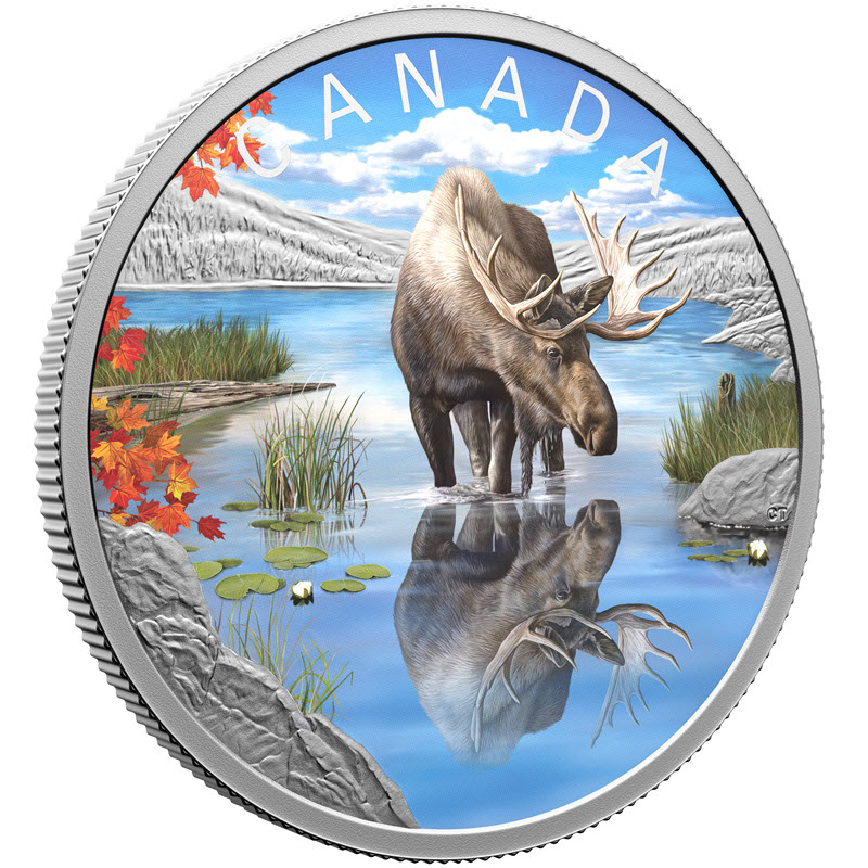 Эта удивительная серебряная монета из серии «Отражение дикой природы» посвящена лосю, символу дикой природы Канады. У нее качество пруф. Поставляется в оригинальном футляре с сертификатом подлинности. Тираж: 7500 штук.