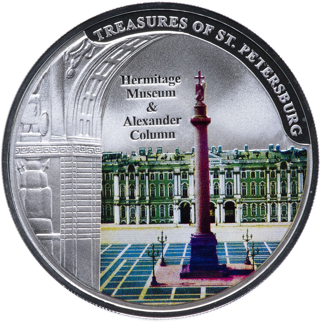 Серебряная монета Малави "Сокровища Санкт-Петербурга. Эрмитаж и Александровская колонна" 2009 г.в., 31.1 г чистого серебра (Проба 999)