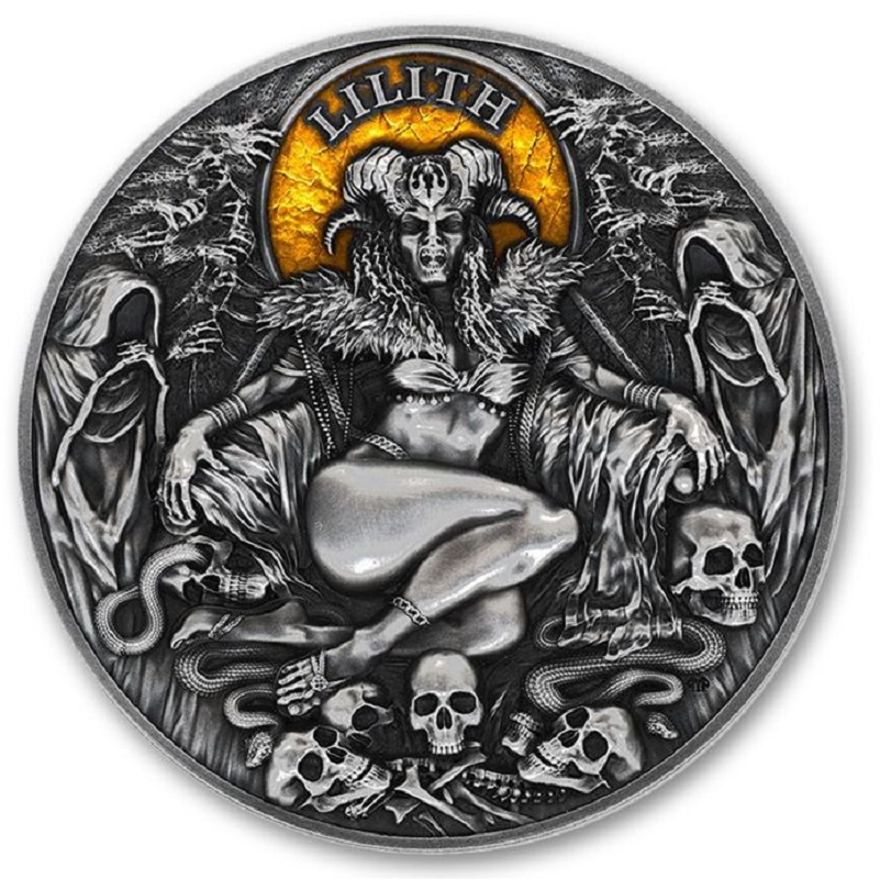 Эта красивая серебряная монета весом в 2 унции посвящена Лилит, первой жене Адама, которая стала демоном. Монета имеет качество Antique Finish, представляет собой невероятный высокий рельеф и частично позолочена. Он поставляется в тематическом футляре вместе с сертификатом подлинности. Ограниченный тираж всего 500 штук по всему миру.