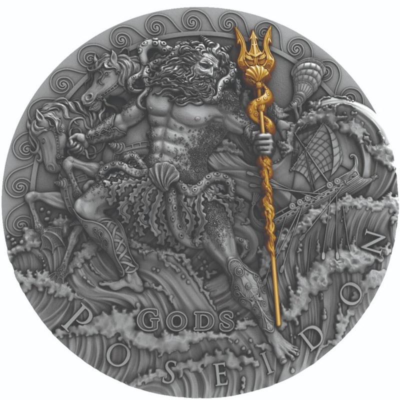 Эта изумительная серебряная монета весом в 2 унции - вторая выпуск из удивительной серии «Боги Древней Греции», посвященной Посейдону, богу моря. Монета украшена чудесными и детализированными сверхвысокими рельефами, у нее выборочное золотое покрытие, античная отделка и она поставляется в деревянном футляре вместе с сертификатом подлинности. Ограниченный тираж всего 500 штук по всему миру!