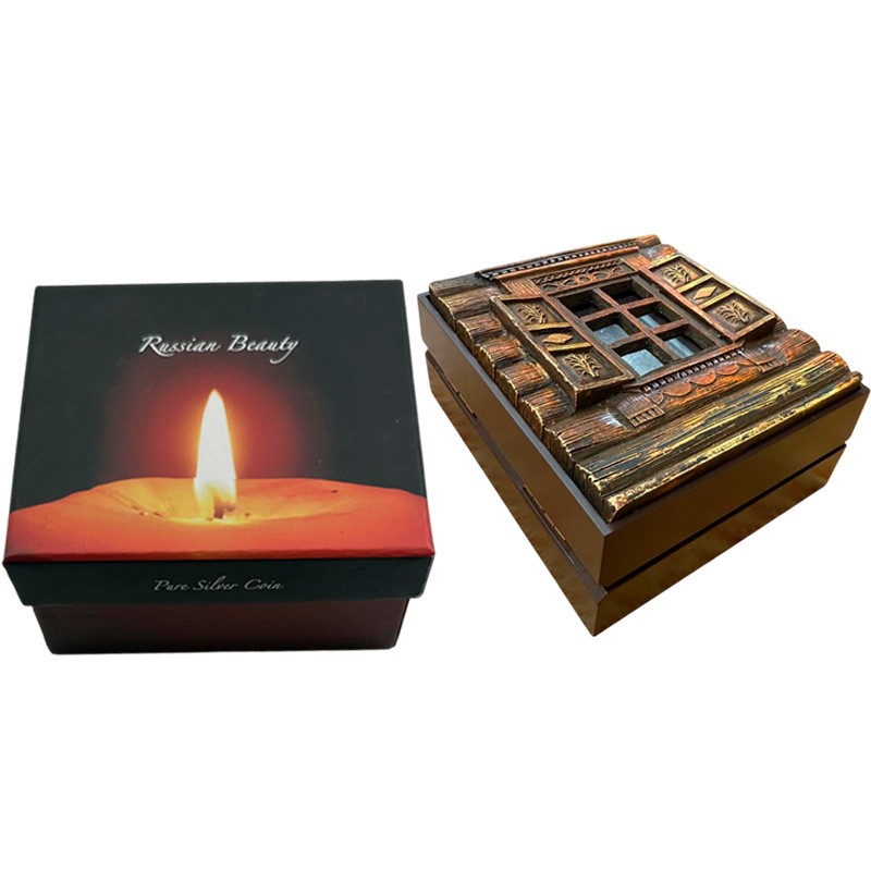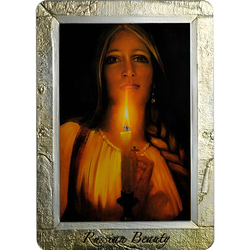 Эта чудесная 1 унцовая серебряная монета из серии «Русская красавица» посвящена картине К. А. Васильева «Гадание» (1976 г.).