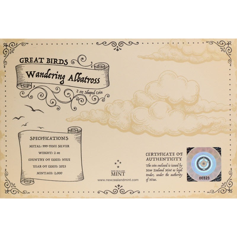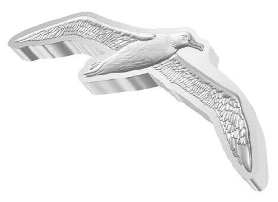 На реверсе монеты изображен странствующий альбатрос, известный также как снежный альбатрос, с белыми перьями, черными крыльями и желтым клювом с характерным крючковатым кончиком. Альбатрос известен своей способностью без усилий парить на большие расстояния и пересекать огромные океаны.