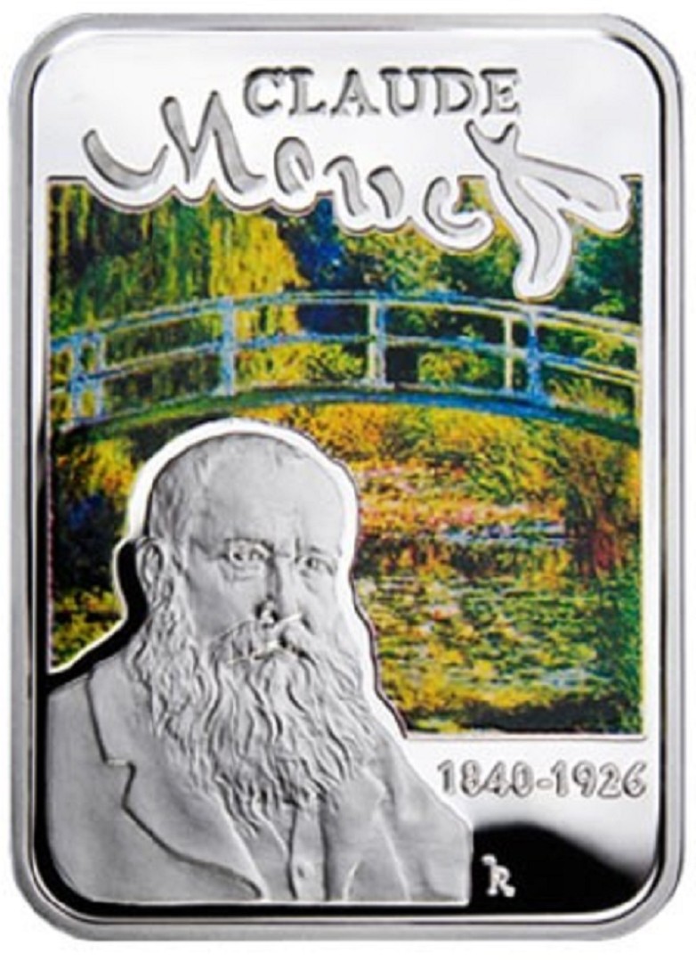 Серебряная монета из серии «Художники Мира», посвященная основоположнику импрессионизма Клоду Моне.