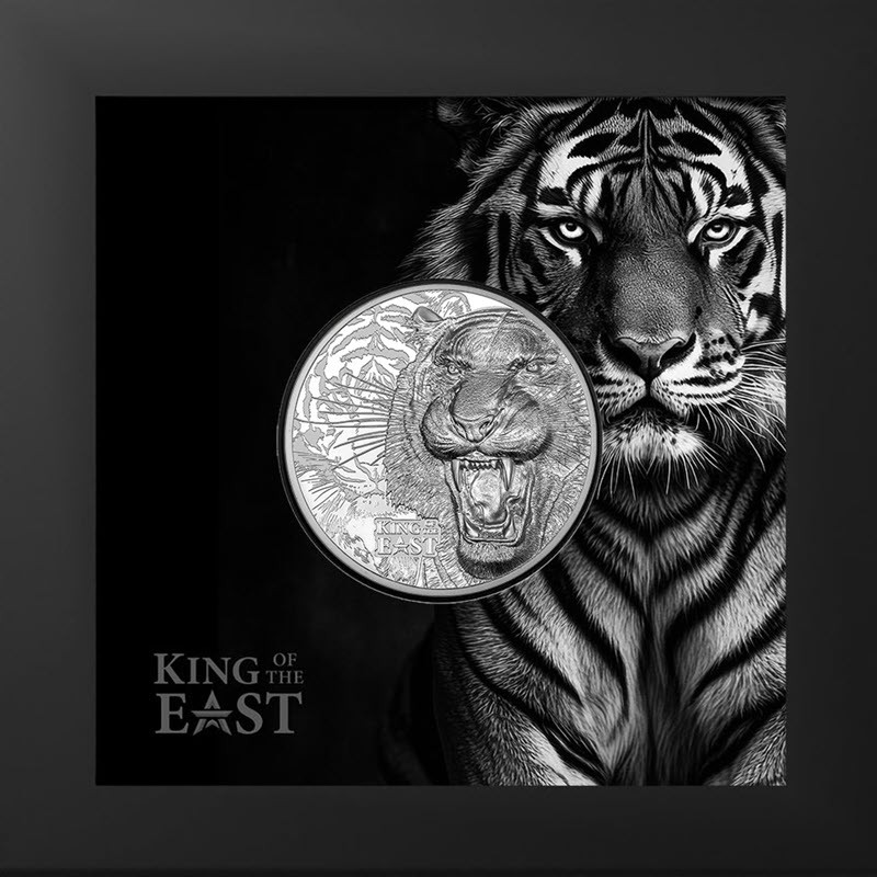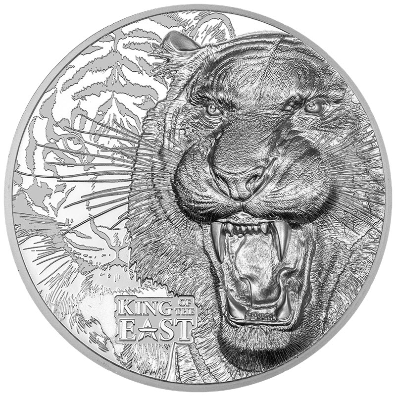 На реверсе изображена голова рычащего тигра. Внизу надпись: KING OF THE EAST (Король Востока).