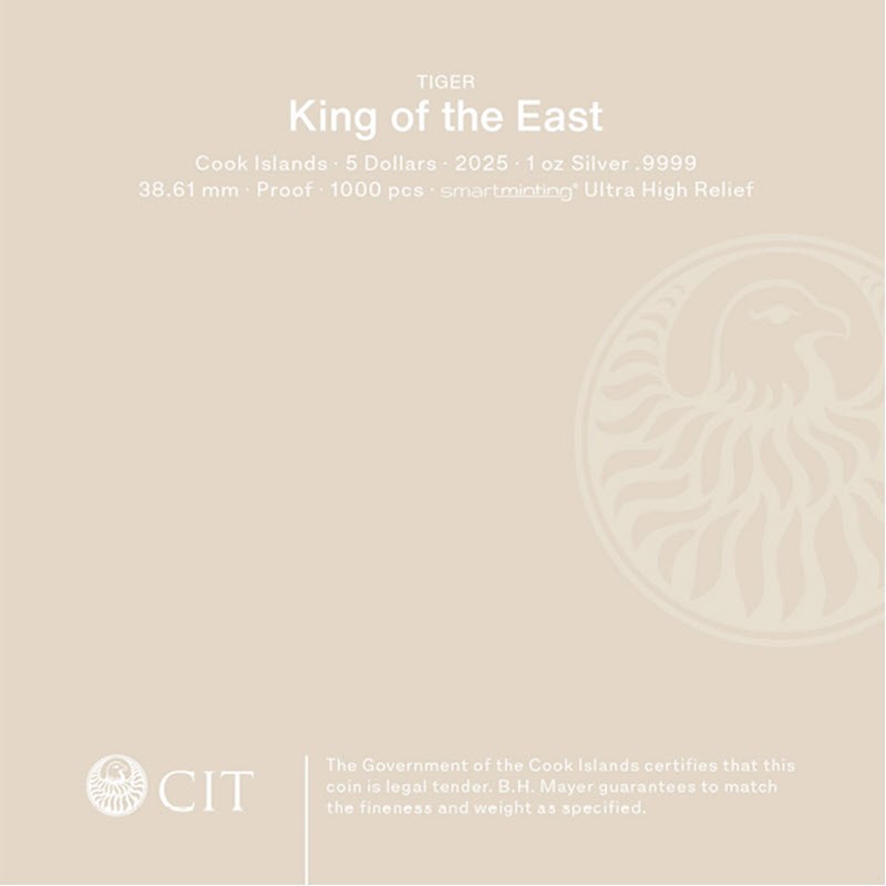 Серебряная монета Островов Кука "Король востока. Тигр" 2025 г.в., 31.1 г чистого серебра (проба 9999)
