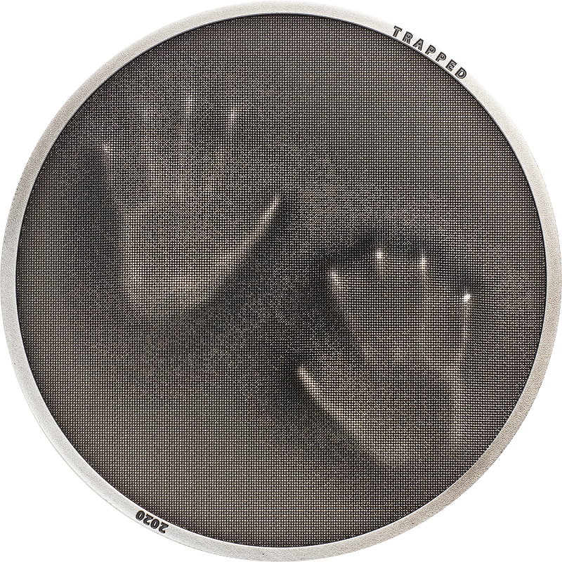 Эта пугающая серебряная монета весом в 1 унцию — еще один успешный выпуск «Ловушки» от CIT. «Все еще в ловушке» вызывает огромную панику и любопытство у каждого, кто смотрит на эту ужасающую монету. Суть монеты заключается в воплощении вселенского кошмара и страха оказаться в ловушке, неважно физической или моральной, без выхода.
