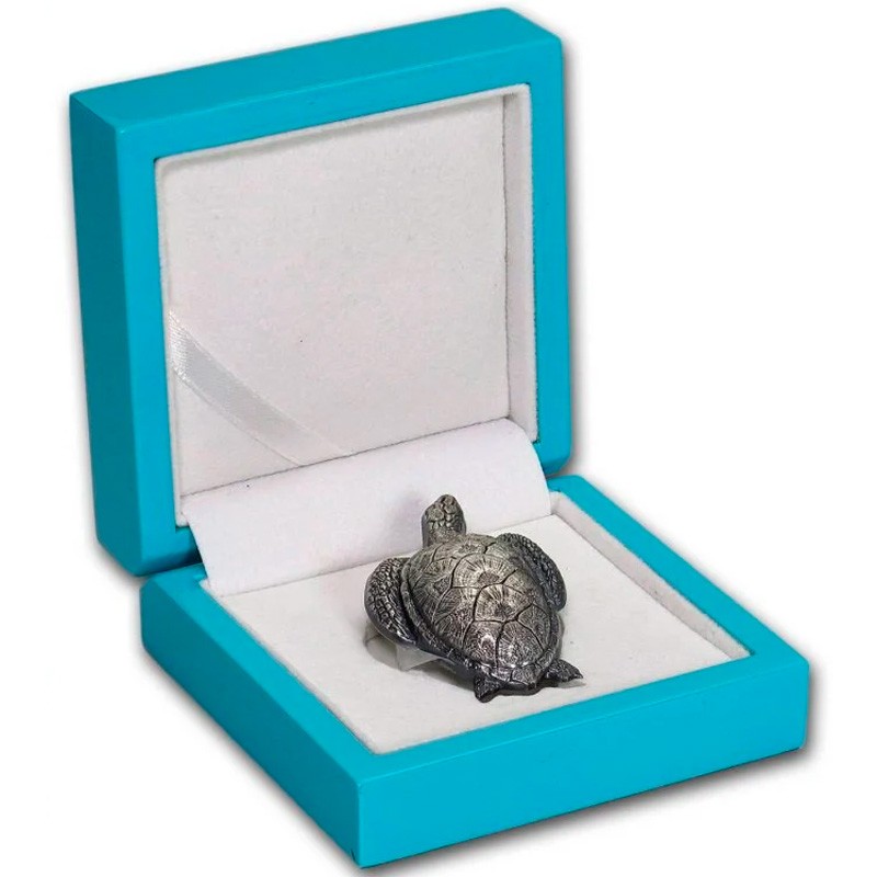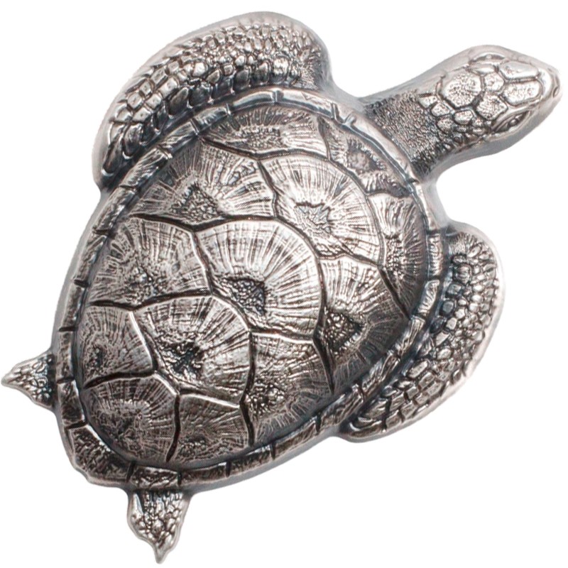 Серебряная монета «Морская черепаха» немецкого монетного двора Mayer Mint GmbH продолжает серию знаменитых монет с высоким рельефом, начатую в 2016 году. Выполненная из чистого серебра весом 45 грамм, она поражает своим необычным внешним видом и формой, повторяя очертания морской черепахи. Высокая детализация и инновационная технология чеканки делают её больше похожей на скульптуру, нежели на обычную монету. Это идеальный подарок для всех, кому близки символы мудрости, долголетия и крепкого здоровья.