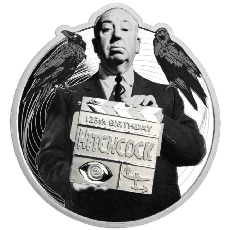 Эта интересная монета из серебра весом 3 унции посвящена всемирно известному режиссеру: Альфреду Хичкоку. Монета имеет форму, выполненную в черно-белой гамме. Она поставляется в футляре, выдержанном в едином стиле, вместе с сертификатом подлинности. Ограниченный тираж - 999 штук по всему миру.