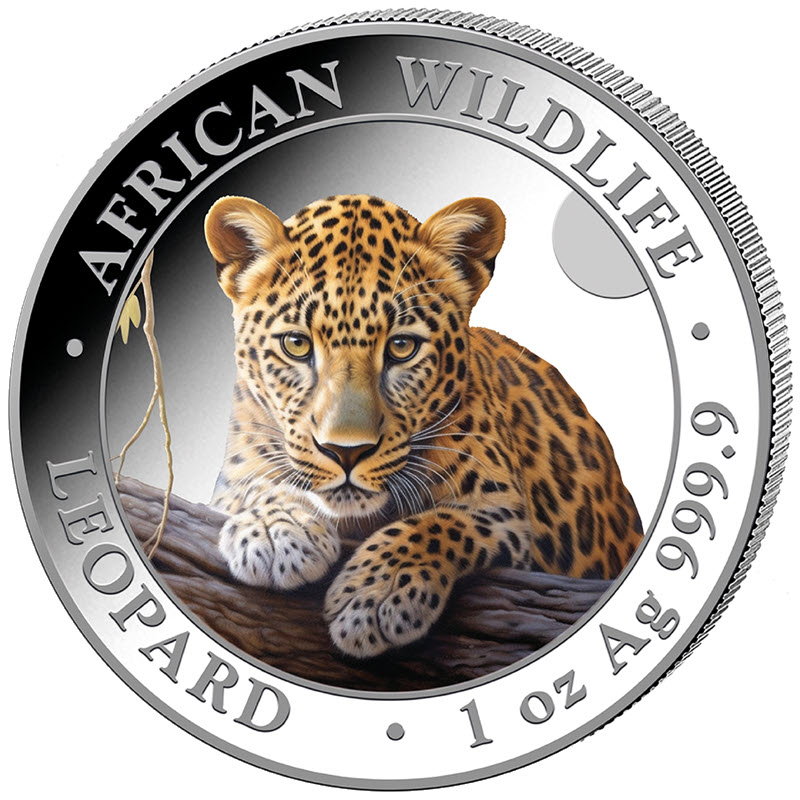 Серебряная монета Сомали - Леопард 2025 года (восьмой выпуск) из серии "Африканская дикая природа". У нее качество BU и селективная окраска. Поставляется в капсуле. Тираж: 5 000 штук.