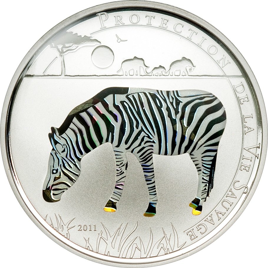 Серебряная монета Того "Зебра" 2011 г.в., 23,13 г чистого серебра (Проба 0,925)