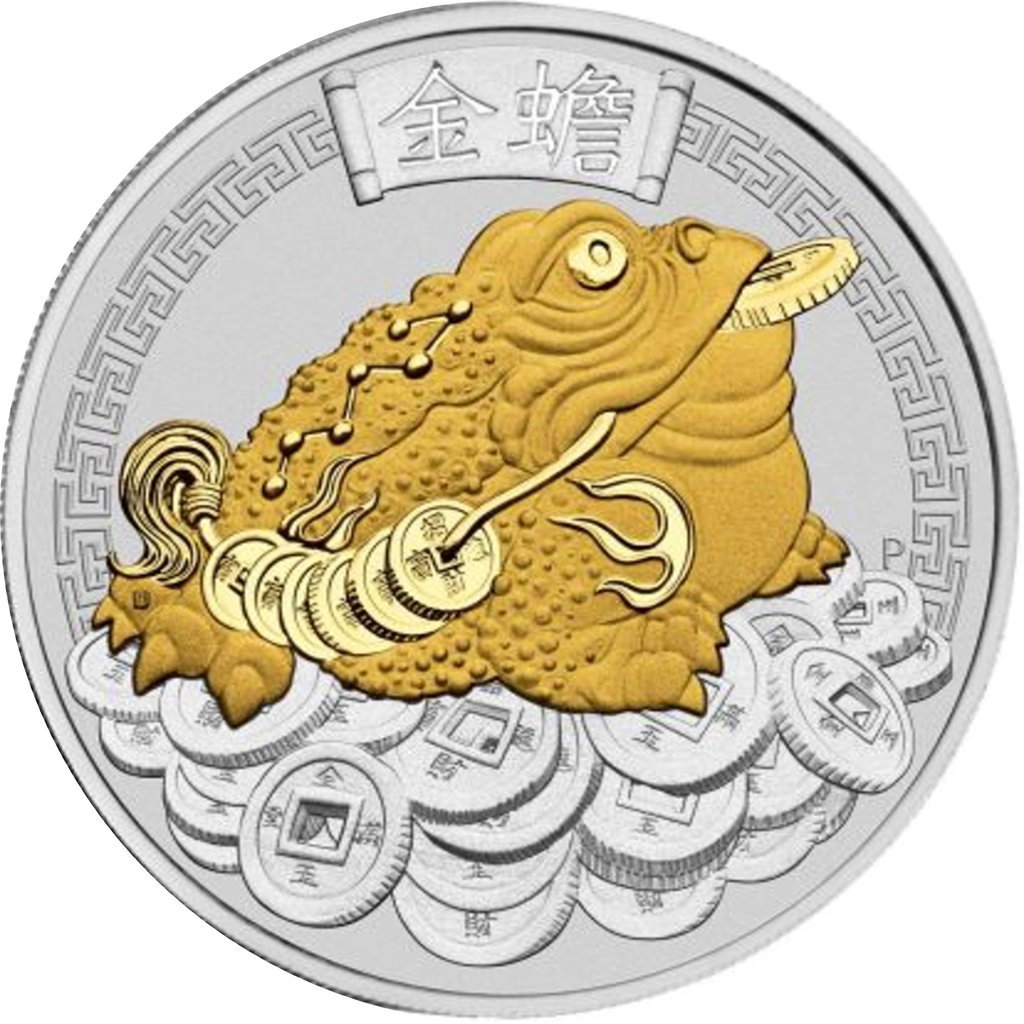 Позолоченное изображение трехлапой жабы (денежной жабы), а также китайский иероглиф, обозначающий «денежная жаба»