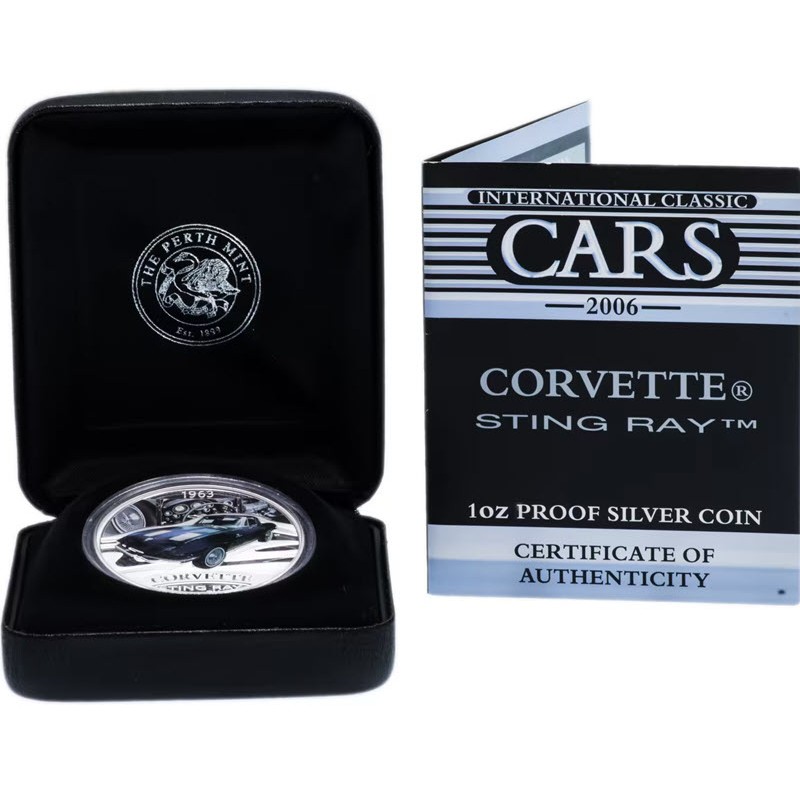 Эта удивительная серебряная монета весом в 1 унцию качества пруф посвящена CORVETTE STING RAY TM GM. Тираж: 1500 штук.