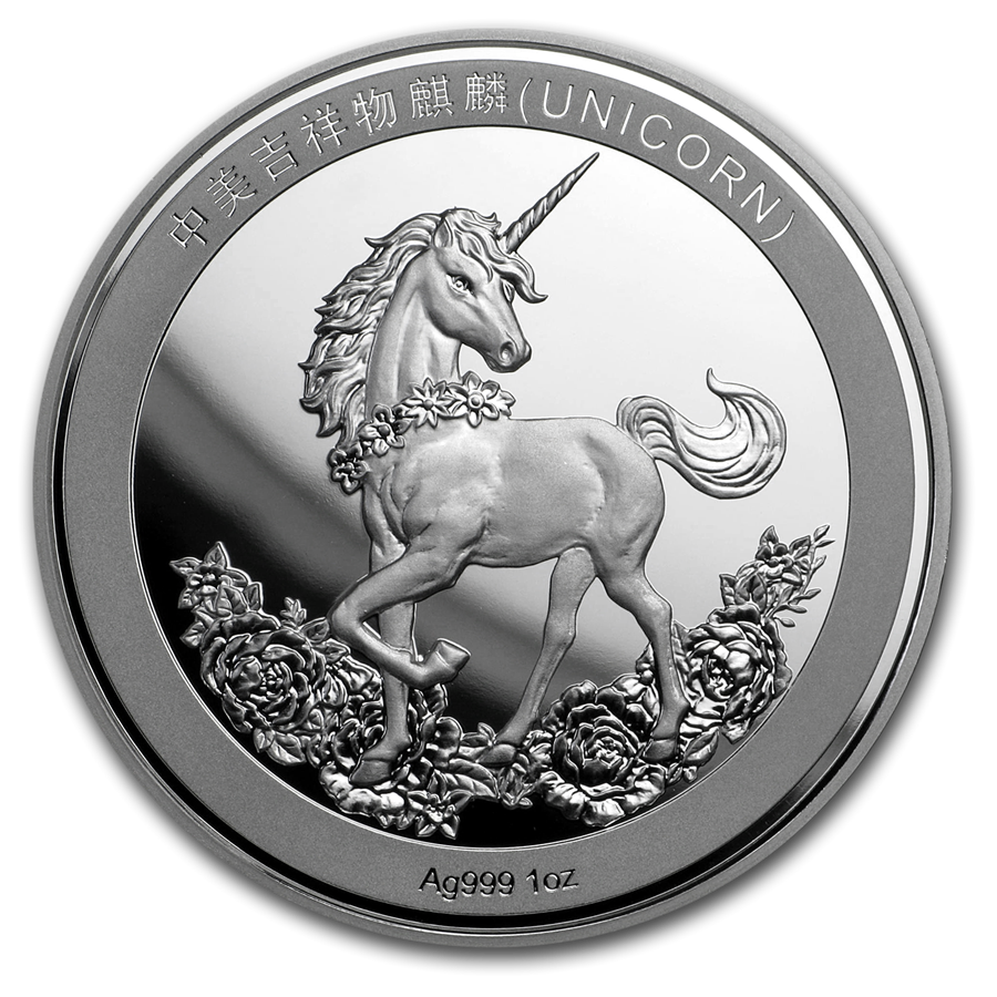 Серия «Китайский единорог» представляла собой ограниченный выпуск монет и наборов ограниченным тиражом, выпущенных Китайским монетным двором в период с 1994 по 1997 год . Единорог - рогатое мифическое существо удачи, и на монетах изображены как восточные, так и западные изображения. В традиционной китайской культуре Цилинь - волшебное существо, знаменующее добро и приносящее процветание. У него голова дракона с рогами оленя, чешуя рыбы, копыта быка и хвост льва.