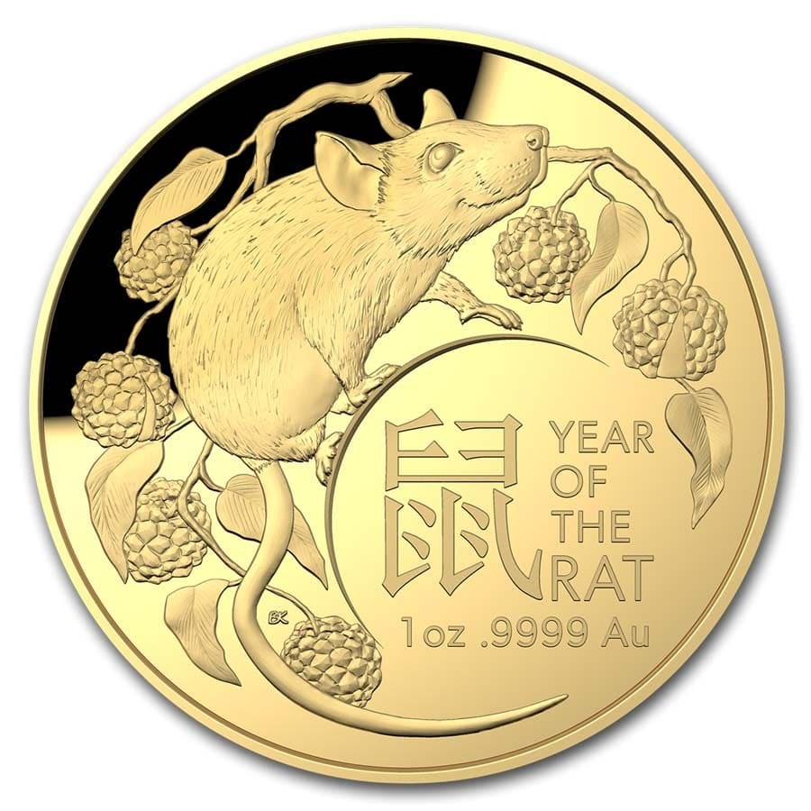 Золотая монета из серии "Лунный календарь" - год Крысы 2020 года выпуска от Королевского монетного двора Австралии. Ограниченный тираж. Монета упакована в коробку и дополнена сертификатом.