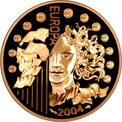 Золотая монета Франции «Европа» 2004 года выпуска. Монета отчеканена в Парижском монетном дворе. Ограниченный тираж.