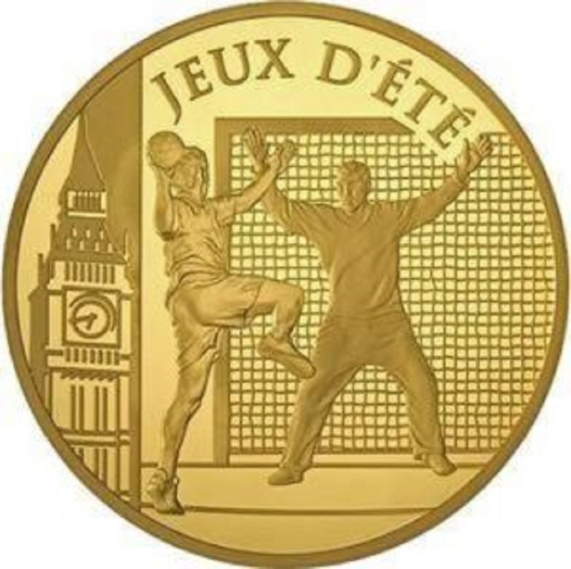 Золотая монета от монетного двора в Париже, выпущенная к Чемпионату мира по гандболу 2010 года. Ограниченный тираж — 99 штук.