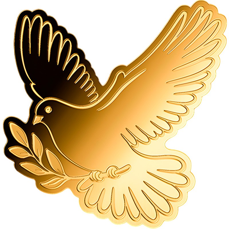 Эта чудесная золотая монета немецкого монетного двора (Small Coin Mint) весом 1/1000 унции в форме голубя с оливковой ветвью является символом гармонии, надежды и мира.