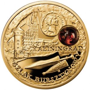 На реверсе сверху, вдоль края – надпись: KALININGRAD (название русского города – пункт Янтарного пути). Под ней - стилизованное изображение пугио – маленького кинжала, использовавшегося римлянами. Выше надписи – стилизованное изображение Замка Кёнингсберг. Рядом с замком, справа – стилизованное изображение монеты, которой расплачивались за янтарь в те времена. Под изображением монеты, справа – янтарная вставка. В основании, вдоль края – полукруглая надпись на польском: SZLAK BURSZTYNOWY (Янтарный путь).