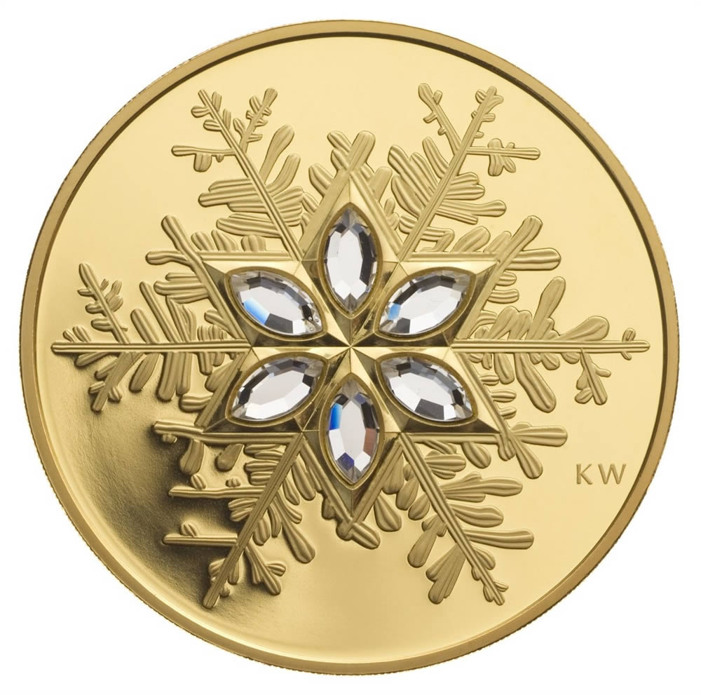 На реверсе изображена снежинка, в центре которой инкрустированы хрустальные кристаллы «Swarovski».