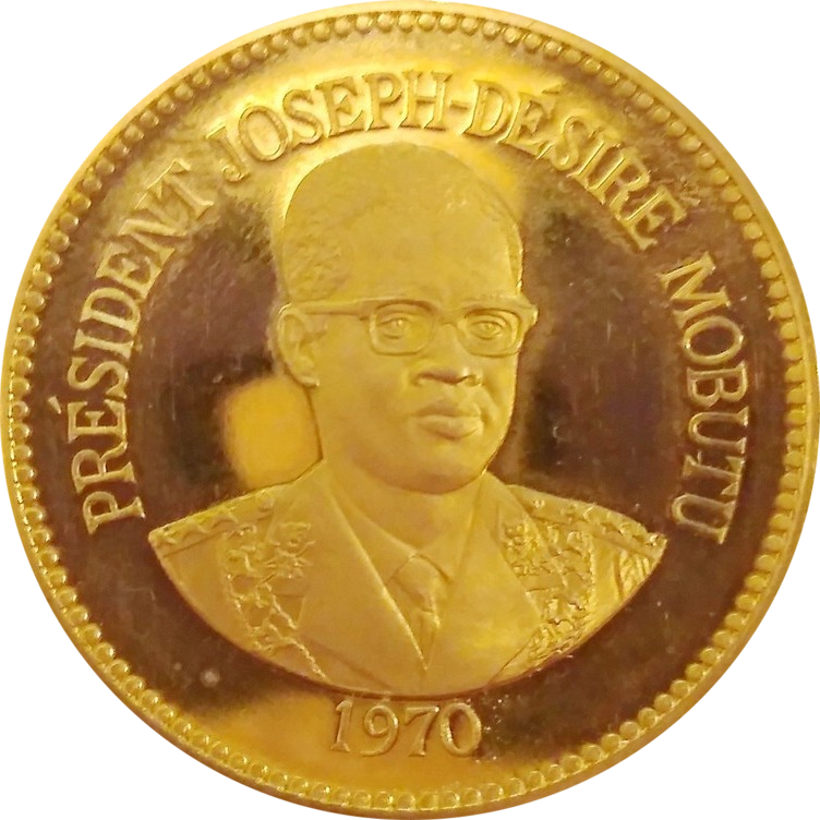 Золотая монета Конго «5-летие президентства Жозефа-Дезире Мобуту» 1970 года выпуска. Ограниченный тираж.